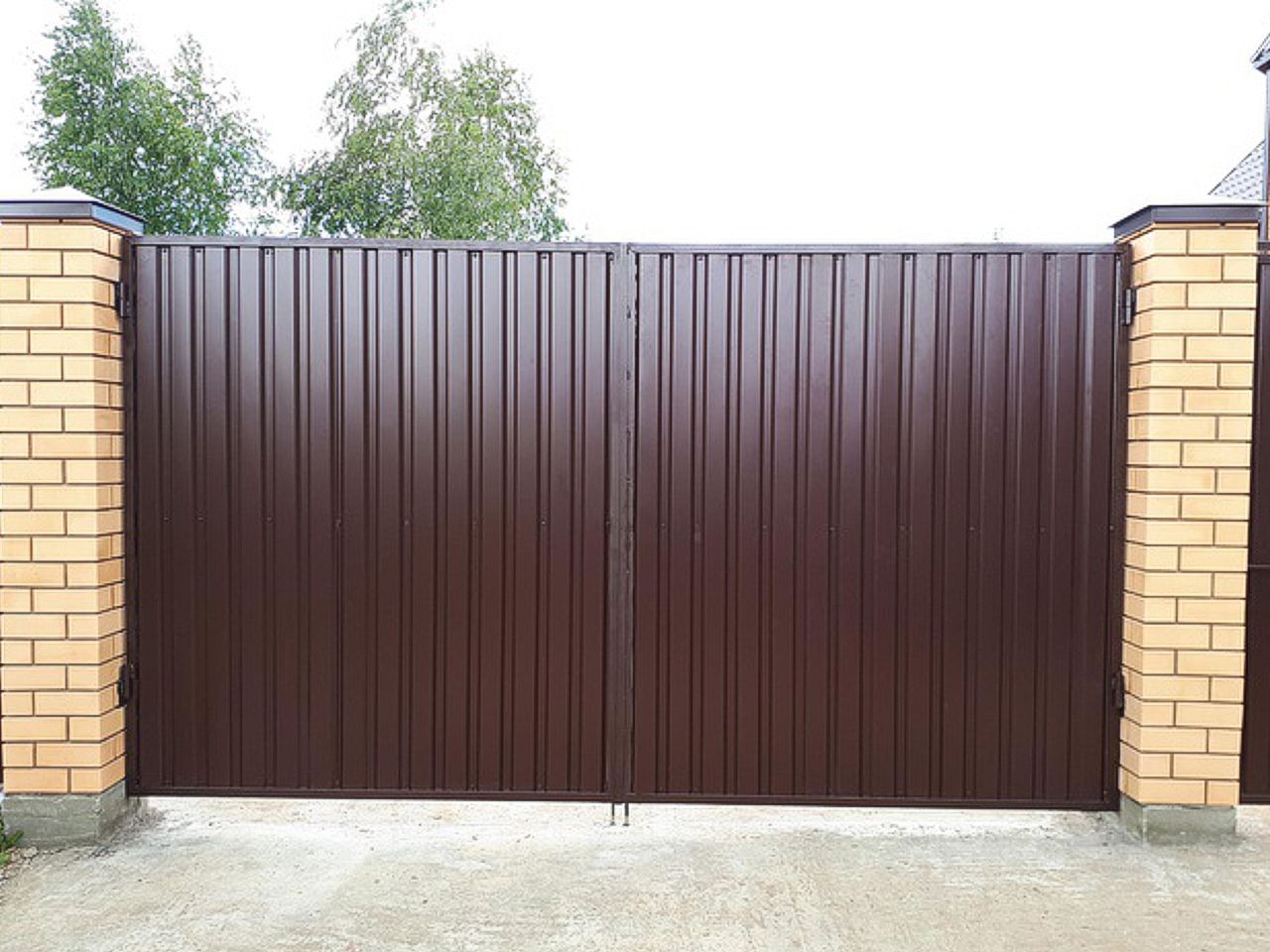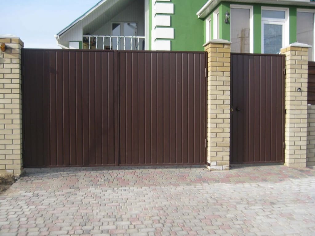 Ворота распашные с дистанционным управлением из профнастила с калиткой